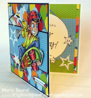 He's an awesome little boy and just turned 11.My daughter Stevie told me he loves skateboarding so I knew this digi, from Kenny K called Airborne would be perfect.